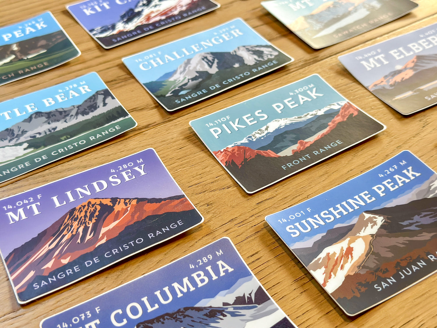 Commemorate your treks with our meticulously designed stickers. Each sticker is a badge of honor, an emblem of your journey, representing those unforgettable moments on Colorado's 14ers.